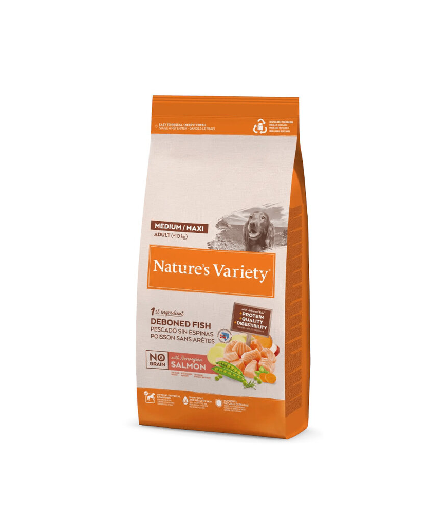 Alimento completo e equilibrado para cães adultos, sem cereais.