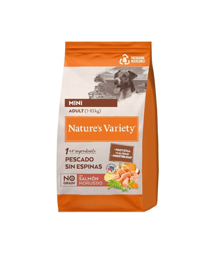 Carne de salmão da Noruega sem espinhas* (20%), proteína desidratada de atum (19%), ervilhas desidratadas* (16%), batata desidratada* (12%), gordura de aves de capoeira* (7%), batata-doce* (4%), proteínas animais hidrolisadas (aves de capoeira, porco, peixe) (4%), polpa de beterraba, proteína de ervilha*, proteína de batata, substâncias minerais, cenoura desidratada* (0,5%, equivalente a 4% de cenoura fresca), amido de batata*, maçã desidratada* (0,3%, equivalente a 2% maçã fresca), algas marinhas desidratadas (kelp)* (0,01%), alecrim desidratado* (0,01%). *Ingredientes naturais