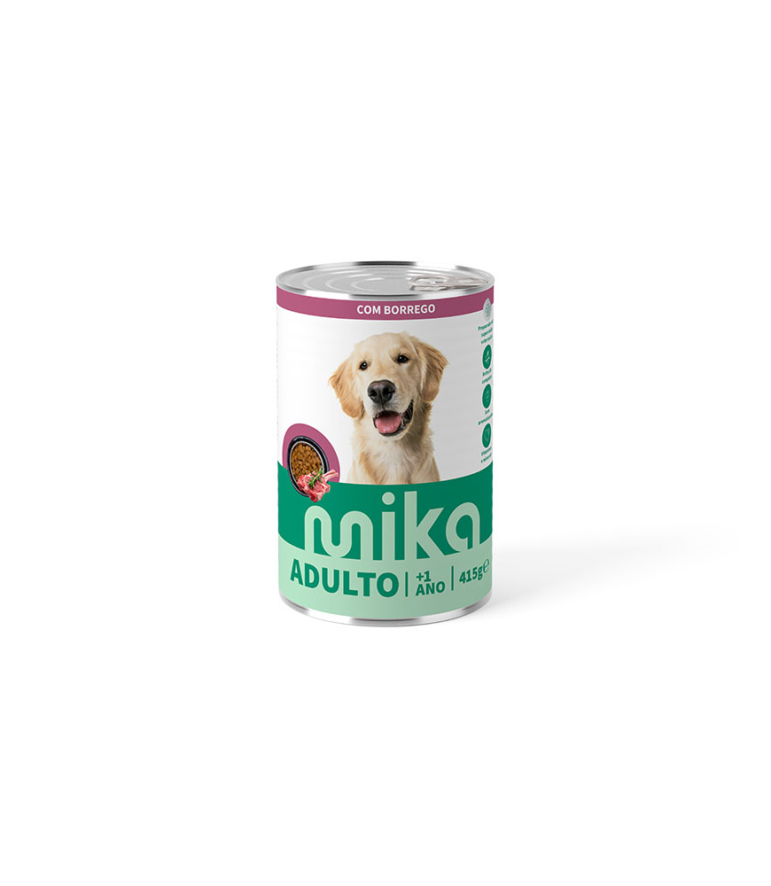 MIKA Adulto com Borrego é um Alimento Húmido Completo para Cão Adulto