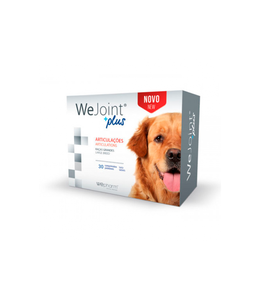WeJoint® Plus é um alimento complementar para cães, desenvolvido para o auxílio e suporte nutricional das articulações. Recomendado para animais em crescimento, animais com elevada atividade física e em qualquer tipo de patologia articular (inflamatória, traumática, degenerativa ou em situações de imobilização articular).
