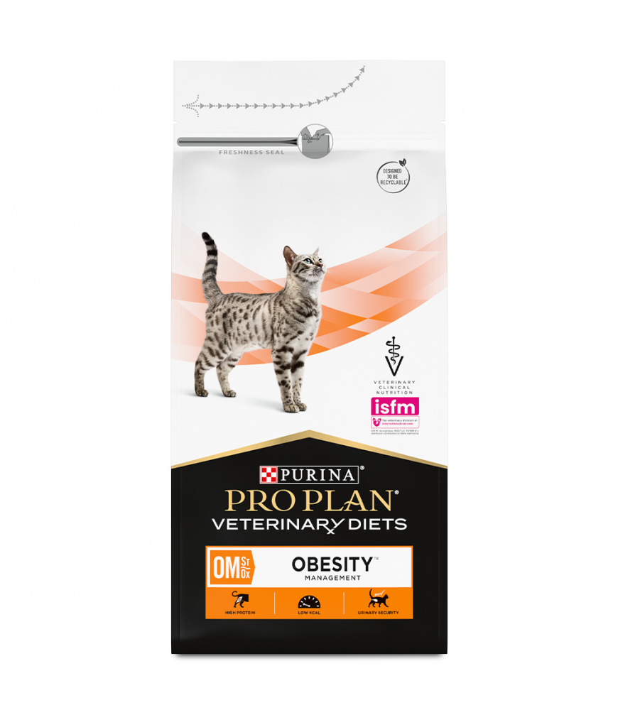 Pro Plan Veterinary Diets OM St/Ox Obesity Management é uma dieta veterinária completa que ajuda na perda de peso em gatos obesos.