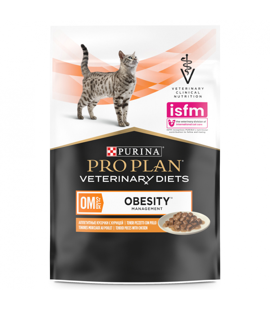 Pro Plan Veterinary Diets OM St/Ox Obesity Management é uma dieta veterinária completa que ajuda na perda de peso em gatos obesos.