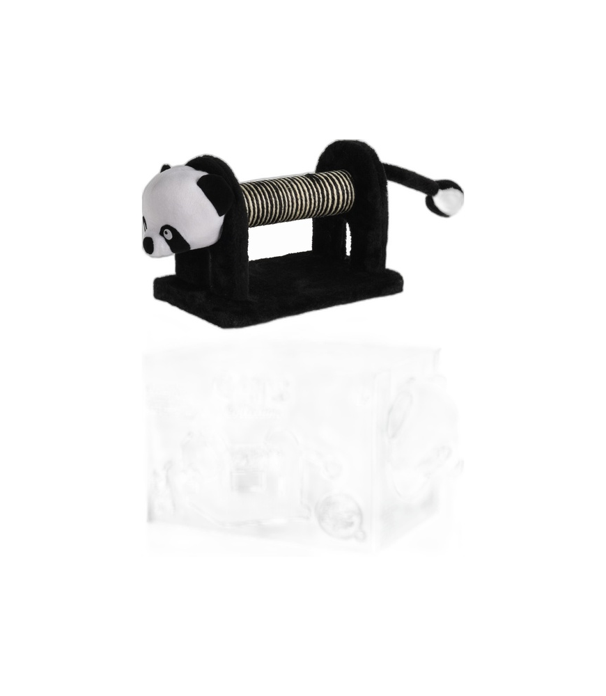 Arranhador original em forma de panda, ideal para gatos curiosos e brincalhões. Com estrutura em peluche suave e zona de arranhar revestida a corda sisal, oferece diversão, alívio do stress e proteção contra danos em móveis. Inclui cauda com bola pendurada para estímulo adicional.