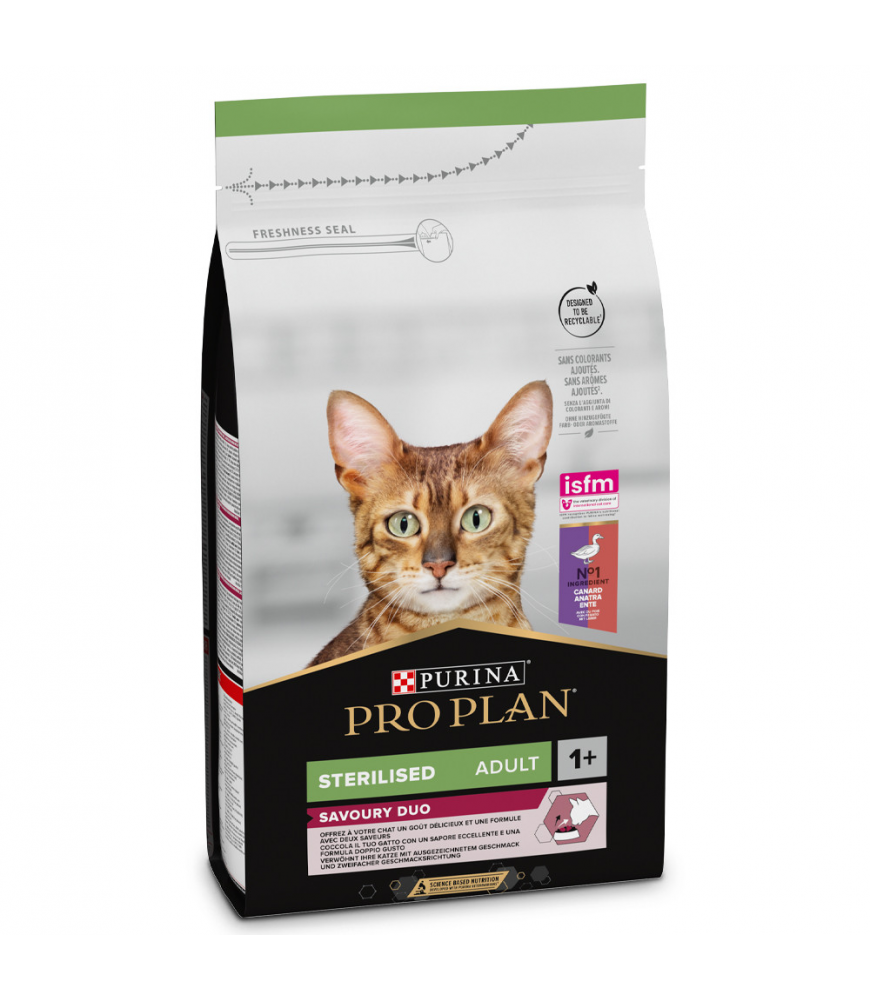 Pro Plan Sterilised Savoury Duo - Ração seca para gato adulto esterilizado exigente - Pato e fígado