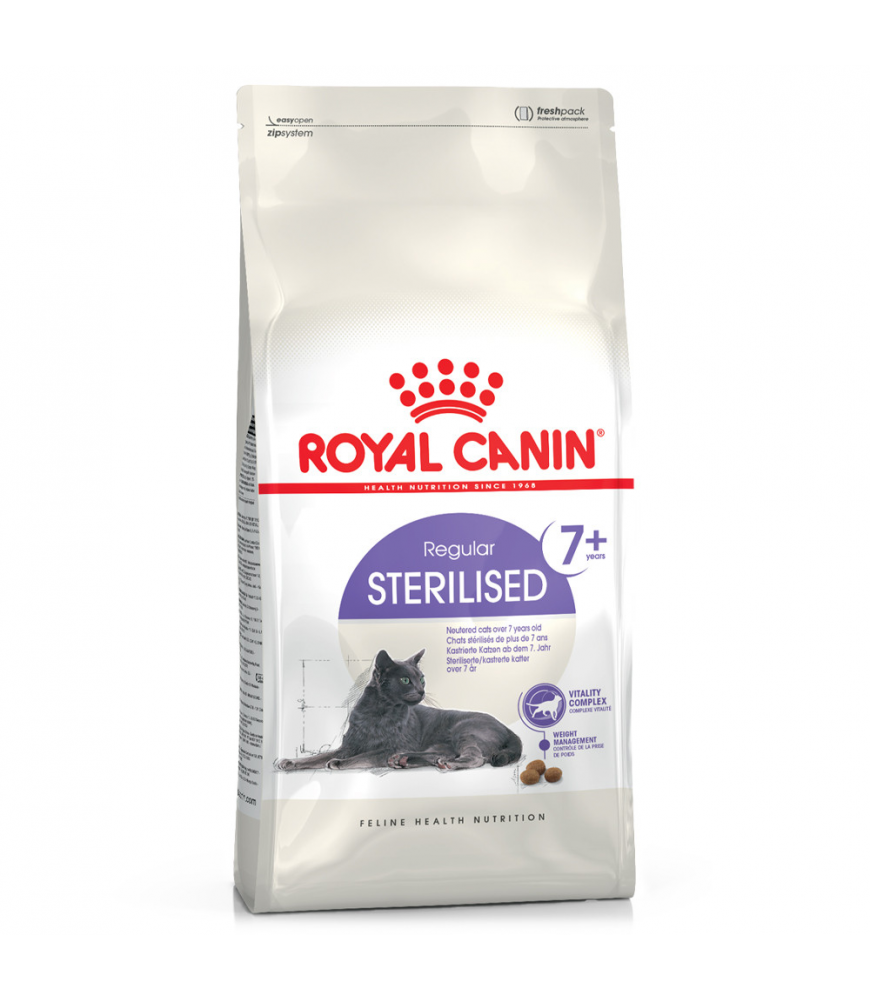 Royal Canin Regular Sterilised 7+ é um alimento completo para gatos esterilizados com mais de 7 anos.